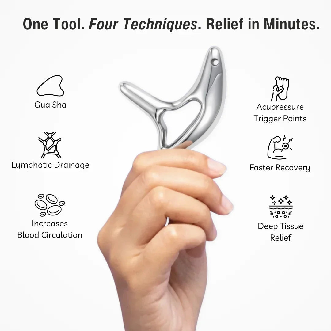 It uses gentle, lubricated strokes (IASTM) to target stubborn knots and “sticky spots”that broad tools often miss. Many users say ithelps them feel looserand move more comfortably after3–5 minutes per area. Results vary.